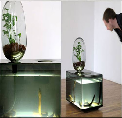 For those who like to have that decorative “TV aquarium” in their lounge then this particular idea is fabulously “decus et tutamen”. To borrow from the Latin (and the British pound coin) it is both decorative and useful. You get your fish – and your vegetables – for the cost of the unit. The price - don’t ask!