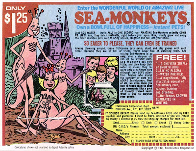 Yeah, -we did the 'seamonkey' thing too RJ. Turns out, my older brother is deathly allergic to something in the brine shrimp and we ended up dumping the whole mess.