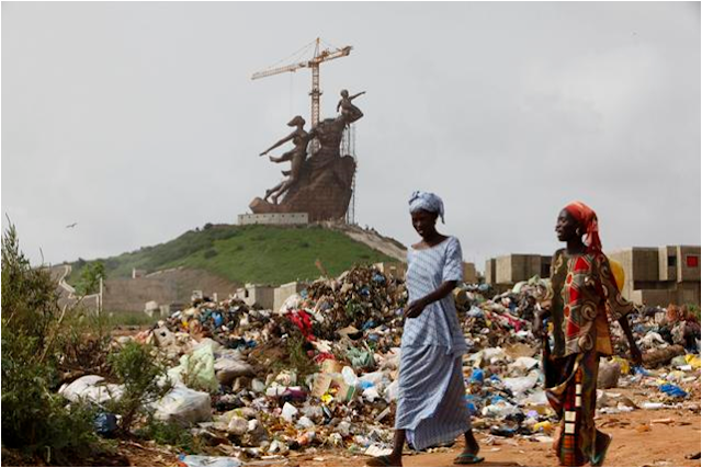 It is situated on the most western tip of the continent and, it was hoped, would become Africa’s most instantly recognizable monument – a kind of Statue of Liberty for the new millennia (and a good size bigger). Unfortunately for the mastermind behind this colossal folly, Senegal’s octogenarian President Abdoulaye Wade the statue has offended a large part of the population of the country. For a start, if you pan away from the monument, this is what you see.