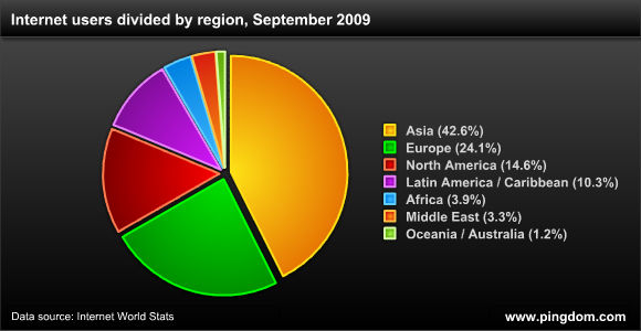 If you are like us here at Webphemera Towers then you have to be in a particular mood in order to want to peruse enormous amounts of facts and figures. However, the statistics for the Internet always make for fascinating reading, especially when you have been surfing it for as long as we have. Why, it seems only yesterday that a pie chart of Internet users would have the USA dominating the cake - with 99.9 percent (OK, that's an exaggeration) of users coming from the States.