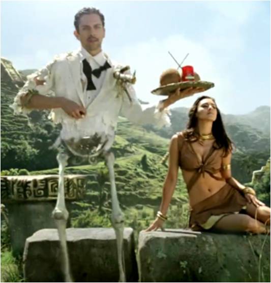 ‘Jungle’s’ last scene features our hero emerging from a lake of flesh-eating piranhas, but nonetheless as cool and debonair as ever. The actor was filmed in his chic white suit with blue leggings against blue screen; they were removed then a CG skeleton was matched to his legs. The Old Spice guy and his lady love were removed from the background and tracked in a CG matte painting. Dust particles, lens flares and foreground and mid-ground vegetation were then comped together.